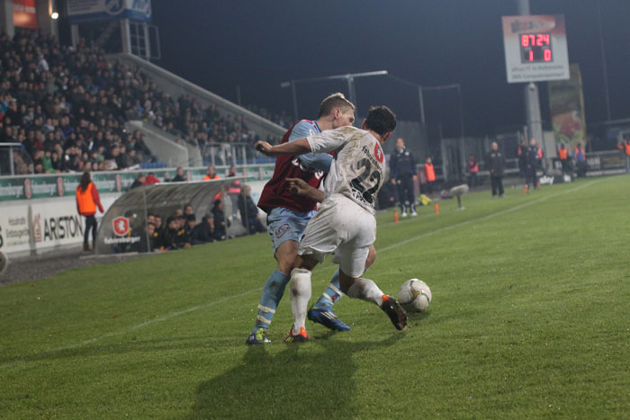 | Dominic luchst Harun Erbek den Ball ab... |