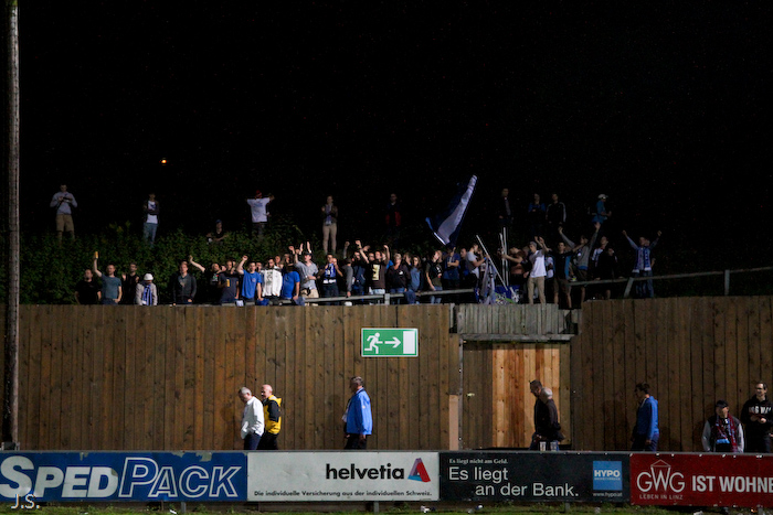 | wegen einer Pyroaktion 3 Stunden vor Spielbeginn verwehrte die anwesende Exekutive 4 Fans den Zutritt ins Donauparkstadion, die Anderen erklärten sich natürlich solidarisch und supporteten heute gemeinsam vom Bahndamm aus... |